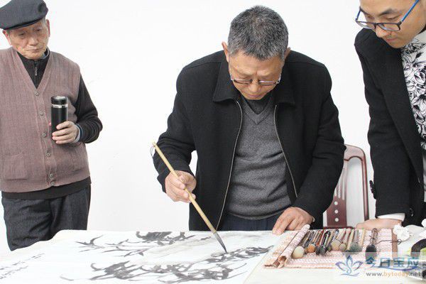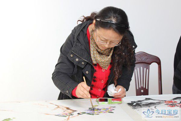 11月10日下午,宝应荷香画院十余名书画家,在县博物馆开展了金秋书画笔会。以秋天美景为题材,书画家们挥毫泼墨,行云流水的勾勒出一幅幅精美的书画作品。 荷香书院的成员中年纪最大的朱老先生,已有八十一岁的高龄,他画的梅花,遒劲有劲 ,脱俗清秀之情跃然于纸。书院成员中年纪最小的也有四十余岁,但是他们以饱满的创作激情,以艺术家独有的视角,向我们展现了秋天独特的美。 书法家笔走游龙,酣畅淋漓的把毛泽东同志的沁园春 --雪,展示在大家面前,表达了大家对伟大思想家的思恋。画家们情系笔墨,牡丹、天鹅、菊花、岁寒三友,无不一一倾诉此情此景,盛世美好。各位书画家们以惊鸿雅韵的神工把笔会推向高潮。(杨璇 朱兴荣)