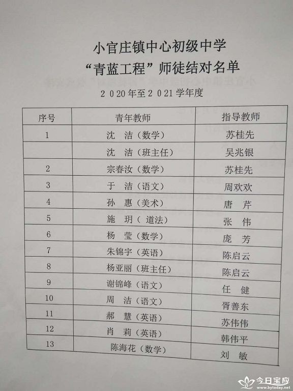 官中:举行师徒结对仪式,三个一给力青年教师 小官庄镇中心初级中学 胥善东 为不断提高青年教师的教育教学水平,让他们站稳讲台,快速成长,9月21日下午,小官庄镇中心初级中学举行了师徒结对仪式,三个一给力青年教师。 会上,该校教科室同青年教师通过了学校青年教师培养计划,明确提出了培养青年教师的五个具体目标和八项措施;青年教师代表和师傅代表分别做了表态发言。常务副校长任健寄语青年教师传承“勤勉执着”校训和官中“三种精神”,做“四有”好教师。该校不仅给每一名青年教师聘请一位市县级骨干教师担任其指导老师,还给力青年教师“三个一”:发放一套2020年中考试卷、赠送一部教育专著和一本青年教师论文集。