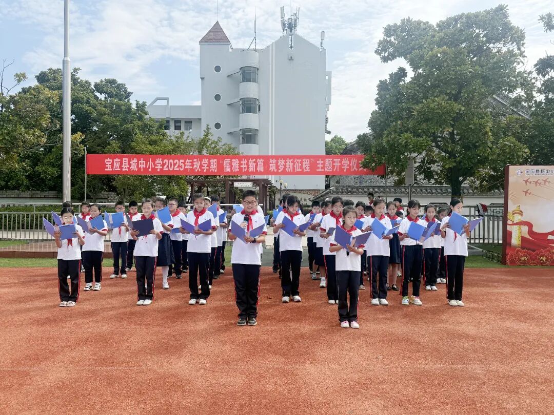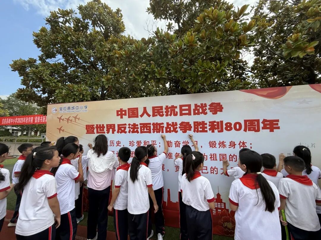 秋风送爽迎新生,红色传承启新程 2025年9月1日上午,宝应县城中小学全体师生齐聚校园,隆重举行以“儒雅书新篇,筑梦新征程”为主题的秋季开学典礼,同步庄严纪念中国人民抗日战争暨世界反法西斯战争胜利80周年。 稚嫩脸庞添活力,儒雅校园启新章 典礼在热烈欢迎一年级新生的氛围中开始。他们如同“聪明活泼、天真可爱的小天使”,为城中小学注新的生机与活力。高年级学生代表送上祝福,希望新同学养成良好的学习与行为习惯,成为“儒雅的少年君子”。 国旗飘扬映初心,国歌嘹亮铸使命 全体师生肃立,举行庄严的升旗仪式。出旗、升旗、奏唱国歌,每一个环节都凝聚着对祖国的崇高敬意,也拉开了新学期奋斗的序幕。 殷切寄语托厚望,笃学尚行赴新程 臧校长在致辞中勉励全体同学“笃学成儒,尚行致雅”,争做脚踏实地、勇往直前的新时代好少年,将来肩负起建设祖国、实现民族复兴的重任。 朗诵致敬英雄史,丰碑永驻少年心 值此抗战胜利80周年之际,五四班学生代表带来朗诵节目《永远的丰碑》,深情回顾历史、缅怀先烈,激发全体师生的民族自豪与爱国热情。 铿锵誓言振人心,和平使命我接续 在六(1)班梁昕怡同学的带领下,全体学生庄严宣誓:“铭记历史,珍爱和平;勤奋学习,锻炼身体……”誓言铮铮,回荡校园,彰显新时代少年的责任与担当。 笔墨落下是承诺,精神传承看今朝 典礼最后举行庄严的集体签名仪式。六年级学生在签名板上方署名,象征扛起责任、传承精神;二年级学生在下方签名,寓意接过火炬、立志向前。笔笔书写的是名字,更是对历史、对未来的郑重承诺。 典礼在庄重而热烈的氛围中圆满结束。 本次活动将开学教育与爱国主义教育深度融合,引导师生传承红色基因、弘扬民族精神,以昂扬姿态共同书写城中小学教育新篇章。 |