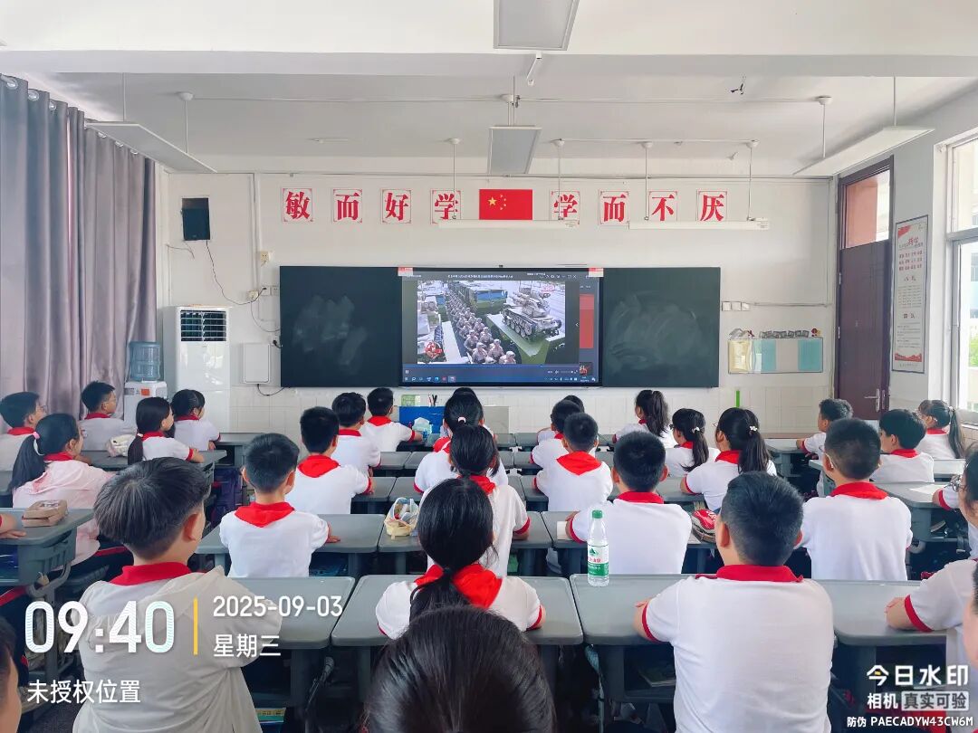 长安街上铁流滚滚,课堂室内目光灼灼,两地场景通过一方屏幕紧密相连,共同凝聚着对历史的敬意与对未来的期待。 9月3日上午,城中小学的师生们齐聚教室和报告厅,观看纪念中国人民抗日战争暨世界反法西斯战争胜利80周年阅兵仪式直播。当国旗升起、国歌奏响时,全体师生起立行注目礼,齐声高唱国歌。 阅兵正式开始,队员们全神贯注地注视着屏幕。陆军、海军、空军、火箭军四大军种整齐划一的方队、铿锵有力的步伐、先进的武器装备...这一幕幕震撼的场景引来队员们的阵阵赞叹和热烈掌声。 观看阅兵仪式是我校爱国主义教育系列活动的重要组成部分。“这是一堂最生动的爱国主义教育课。”校长表示,组织观看阅兵仪式旨在让师生铭记历史、珍爱和平,感受祖国日益强大的综合国力,增强民族自豪感和使命感。 阅兵结束后,校园内激动情绪未散。各班级纷纷开展观后讨论会,学生围绕“我印象最深的瞬间”、“什么是英雄”、“我如何为强国做贡献”等话题分享感受。 这次观看阅兵活动,在孩子们心中播下了爱国报国的种子,增强了民族自豪感和使命感,必将激励着他们在未来的道路上勤奋学习、茁壮成长,努力成为担当民族复兴大任的时代新人! |