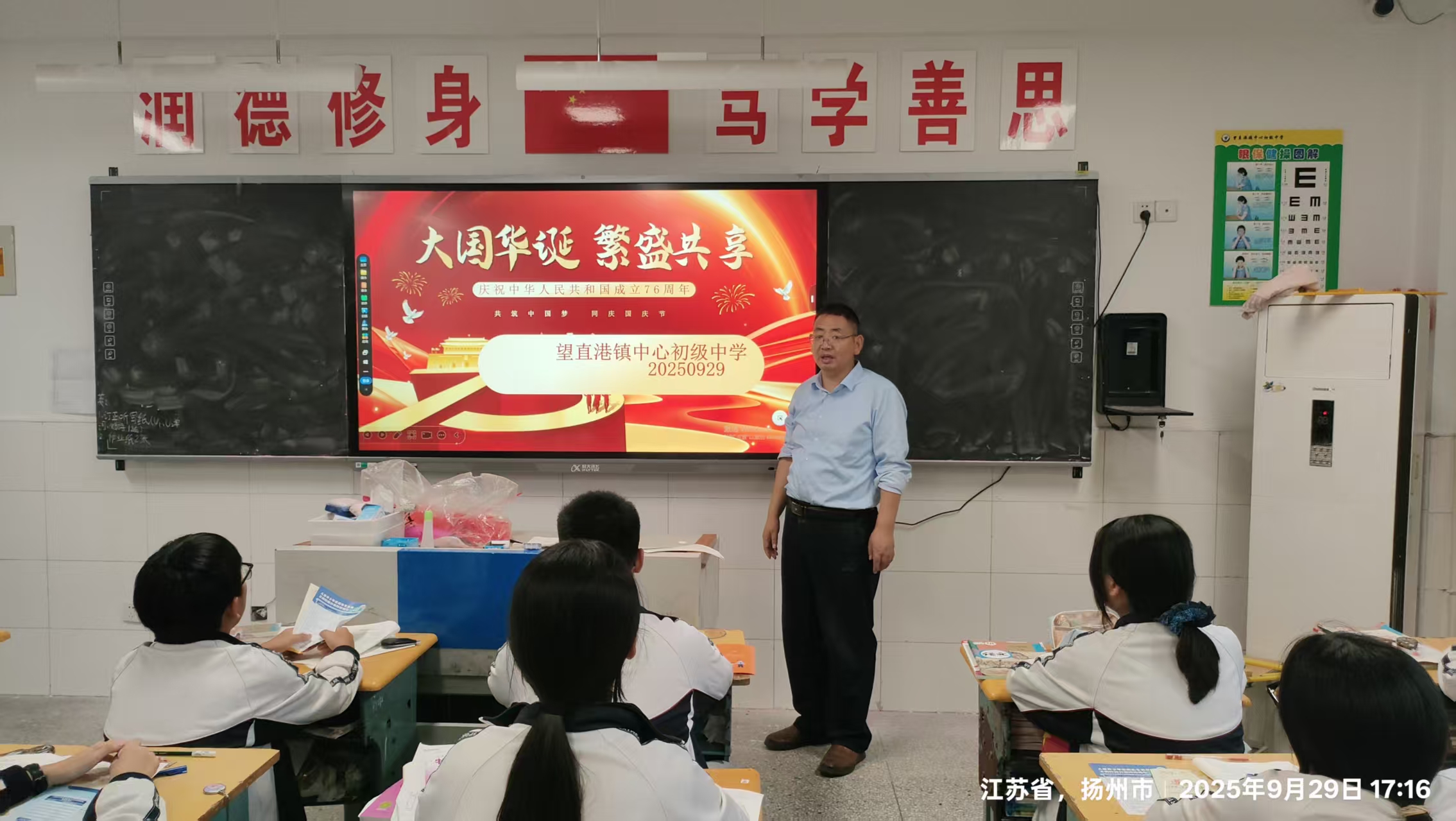 宝应县望直港镇中心初中 刁仁宏 为庆祝中华人民共和国成立76周年,激发广大师生的爱国热情与民族自豪感,拓展“诚真臻美,以德润人”育人阵地,宝应县望直港镇中心初中于9月29日至10月10日组织开展了以“赓续红色血脉,共筑青春中国”为主题的国庆系列教育活动。全校师生踊跃参与,校园处处洋溢着喜庆祥和的节日氛围。 一、国旗飘扬,青春誓言铿锵有力 9月29日上午,全校师生齐聚操场,举行庄严的升旗仪式。梁梦婕主任发表了题为《砥砺家国情怀,共筑青春梦想》的国旗下讲话,深情抒发对祖国的热爱与对未来的美好期许,激励全体同学勇担时代使命,奋发向上,书写无悔青春。 二、歌声飞扬,共颂祖国壮丽山河 同日下午,全校学生齐声高唱《我的祖国》,用嘹亮的歌声传递对祖国的深情祝福。随后,各班组织开展了“青春飞扬,礼赞祖国”主题班会,同学们通过演讲、朗诵、知识竞答等多种形式,进一步加深了对国家历史与发展成就的理解,增强了民族自信心与凝聚力。 三、艺术传情,多彩形式礼赞华诞 10月9日至10日,学校陆续举办了“红歌嘹亮,礼赞祖国”歌唱比赛、“声颂祖国,礼赞山河”朗诵比赛、“手绘中国红,纸间颂国庆”手抄报比赛以及“山河披锦绣,黑板绘祖国”黑板报评比。同学们以歌声、朗诵、画笔等多种艺术形式,尽情抒发对祖国的热爱与祝福,充分展现了新时代青少年的艺术才华与精神风貌。 四、光影记录,定格身边的“中国红” 10月1日至8日,学校组织开展了“我为祖国拍张照”摄影大赛。同学们纷纷拿起手机,记录下街头飘扬的国旗、社区欢庆活动等充满国庆元素的动人画面,用镜头讲述普通人与祖国同成长、共奋进的温暖故事。 五、校园扮靓,营造浓郁爱国氛围 为营造喜庆热烈的节日气氛,学校在9月30日至10月10日期间,通过电子屏滚动播放国庆宣传标语,悬挂灯笼、彩旗装饰校园,并在广播站每日播放《我和我的祖国》《歌唱祖国》等经典歌曲,让爱国情怀如春风化雨,浸润校园每一个角落。 本次国庆系列活动的成功举办,不仅丰富了校园文化生活,更让同学们在亲身体验中深刻感悟到“国家兴亡,匹夫有责”的责任与担当,也为学校进一步践行“诚真臻美,以德润人”及“三品教育”理念注入了新动能。未来,望直港镇中心初中将继续秉持育人初心,推动爱国主义教育走深走实,引导广大学子赓续红色血脉,为民族复兴贡献青春、智慧与力量! |
