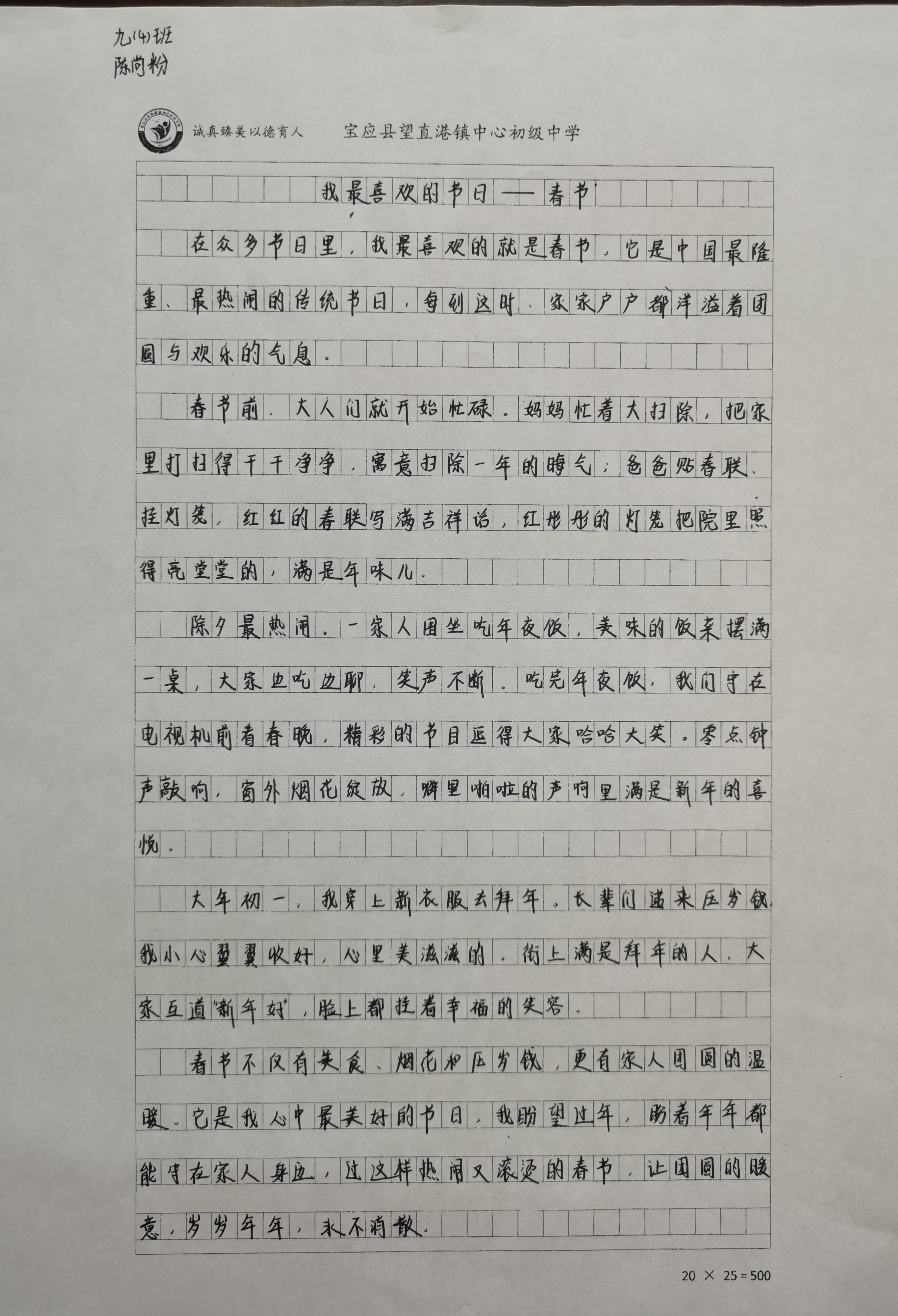 宝应县望直港镇中心初中 刁仁宏 3月11日,宝应县望直港镇中心初中“以行践德 筑梦寒假”德育作业评选结果正式揭晓。本次德育实践作业于寒假前启动,以“实践育德、传承文化、强健体魄”为核心主题,引导学生利用假期在实践中涵养品德、在体验中增长智慧、在亲情中感悟温暖,不断提升综合素养,厚植家国情怀。 寒假期间,全体学生踊跃参与各项实践活动,家长们也积极响应、融入其中、倾情陪伴,共同营造了温馨浓厚的家校共育氛围:同学们与父母一同走进爱国主义教育基地,追寻红色足迹;深入田间地头,体验感受的艰辛与光荣;提笔写下致父母的家书,父母也以书信寄语孩子,纸短情长间流淌着浓浓的亲情;围绕春节、元宵等传统节日撰写征文,抒发感悟;观看爱国影片,书写观影心得;品读经典书籍,汲取精神养分;坚持每天仰卧起坐、跑步、跳绳、打球、立定跳远、俯卧撑等体能锻炼,以强健体魄迎接新学期;用画笔精心制作“长者先动筷夹菜用共筷”、“垃圾分类”、“春节”、“元宵节”等主题手抄报;用镜头记录参与家庭扫尘、贴春联、帮做年夜饭、帮长辈剪指甲、陪长辈聊天的温馨瞬间,在日常点滴中传递亲情,传承家风。 开学第二周,政教处组织评选,从实践照片、征文、书信、手抄报等多类作品中择优评选出各类奖项,对综合表现突出者颁发“寒假德育实践小标兵”荣誉证书,并合影留念。 此次寒假德育作业,接地气,显成效,不仅丰富了学生的假期生活,展现了学生们的实践风采与家国情怀,更让德育在点滴生活中悄然扎根,在行动中浸润心灵,为新学期注入了温暖而坚实的成长力量。 |