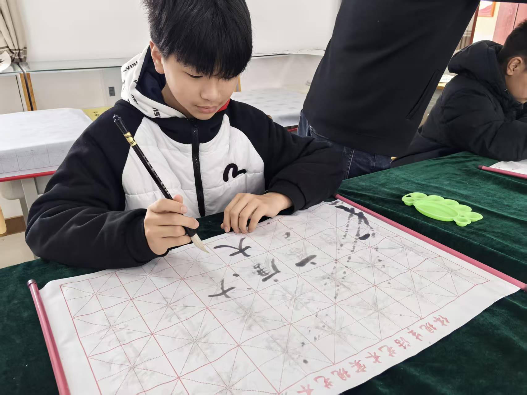 本次春令营以“手工、音乐、书法”为核心,邀请专业教师全程辅导。手工课上,孩子们在老师指导下,用彩纸、黏土创作灵动作品,指尖流转间尽显创意;音乐教室里,琴声悠扬,孩子们跟着老师识谱、弹奏,在旋律中感受艺术之美;书法课堂上,一笔一画、一撇一捺,孩子们在墨香中静心习字,传承中华传统文化。