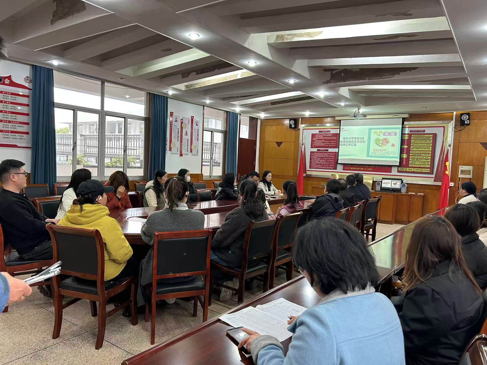 一餐一饭总关情 一言一行守初心 ——城中小学召开膳食监督家长委员会暨食堂员工专题培训会 2026年4月9日下午,城中小学内暖意融融,一场关乎师生“舌尖安全”与“营养健康”的盛会在此举行。学校分别召开了膳食监督家长委员会会议与食堂员工专题培训会,旨在以匠心致初心,用真情暖童心。 在膳食监督家长委员会会议上,三方共话,议程紧凑而务实。食堂司务长王新春主任首先登台,他全面复盘了3月份食堂的运营管理工作。从食材采购的索证索票到春季菜品的营养搭配,王主任的汇报条理清晰,展现了学校对食品安全底线的坚守与对膳食质量精益求精的追求。 随后,食堂会计陈长秀对3月份的财务情况进行了详尽通报。每一笔收支都清晰可查,每一分餐费都用之有道,透明的财务公开制度,让在场的家长代表们吃下了一颗“定心丸”,充分体现了学校食堂公益性原则的落地生根。 会议的高潮由臧丽华书记掀起,她向大家通报了近期教育局食堂满意度调查结果。当屏幕上显示出93.7%的综合满意度时,现场响起了热烈的掌声。这份沉甸甸的成绩单,不仅是对学校食堂工作的最大肯定,更是家校共育结出的硕果。臧书记强调,学校将以此为新起点,持续优化菜品口味,丰富菜品种类,让孩子们不仅“吃得安全”,更能“吃得美味”。 同日上午,臧丽华书记还主持召开了食堂员工专题培训会。会议聚焦于提升员工的技能与业务素养,通过规范操作流程、强化服务意识,致力于打造一支专业、敬业的餐饮保障团队。 此次会议,不仅是一次工作的部署,更是一次责任的传递。城中小学正以实际行动,用心守护着孩子们舌尖上的安全,用情做好着校园膳食的每一份保障。 |