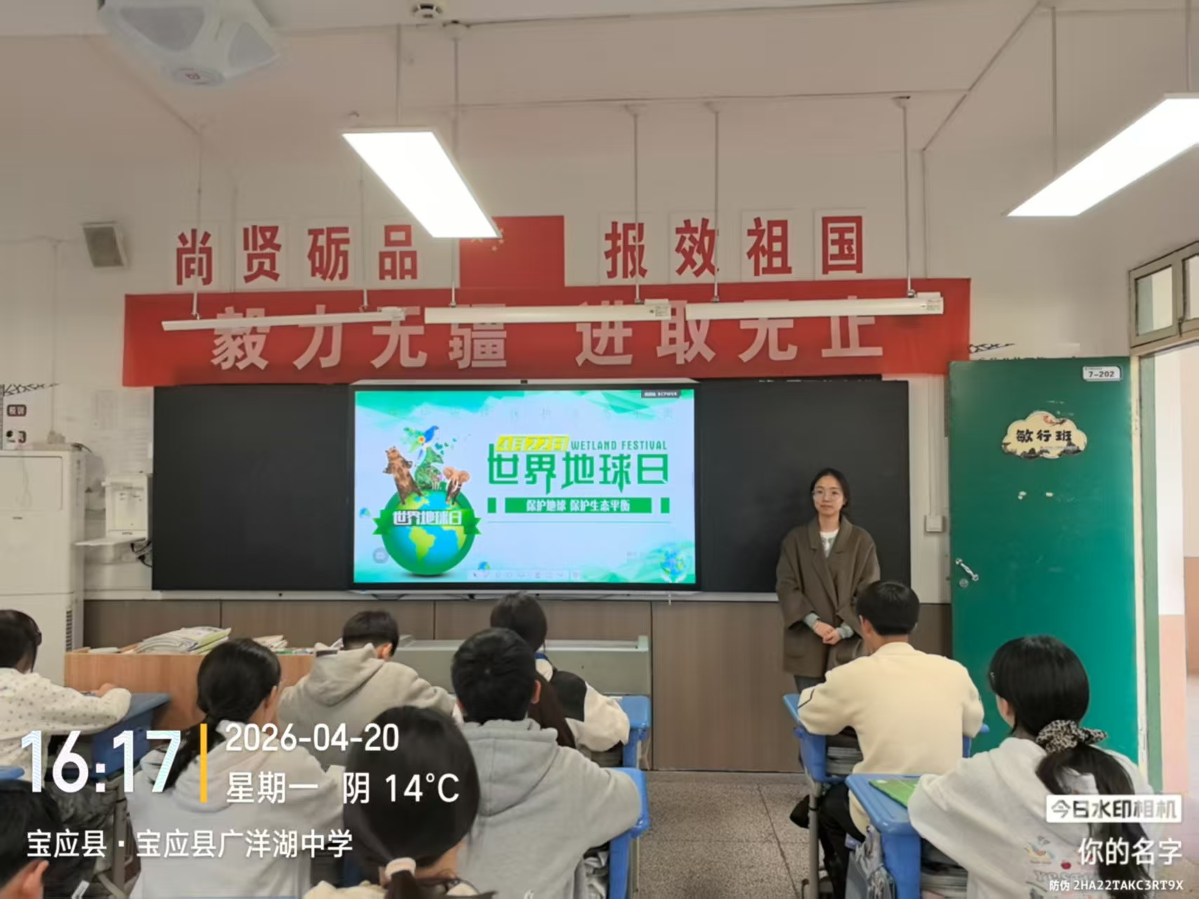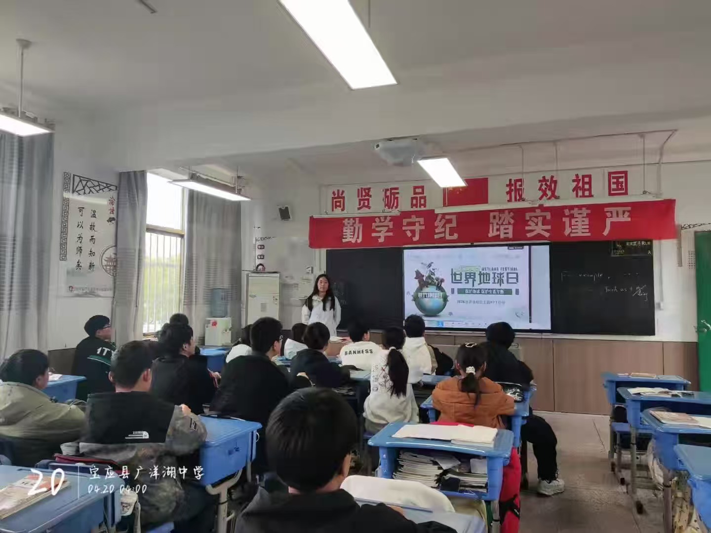 为深入贯彻生态文明教育理念,引导学生树立“绿水青山就是金山银山”的环保意识,在第57个世界地球日来临之际,广洋湖初中于4月20日组织各班级召开“守护蓝色星球 共筑绿色校园”世界地球日专项班会,全体师生共同参与,以实际行动践行环保承诺,传递绿色希望。 班会伊始,各班级班主任结合PPT、短视频等素材,用生动直观的方式向学生讲解世界地球日的起源、设立意义及当前地球面临的环境挑战——从温室效应加剧、冰川融化,到塑料污染蔓延、生物多样性减少,一个个触目惊心的案例,让同学们深刻认识到保护地球的紧迫性和重要性。班主任们结合校园实际,引导学生思考:“随手关灯、节约用水、垃圾分类,这些看似微小的举动,如何成为守护地球的力量?”引发了同学们的热烈讨论。