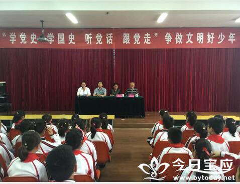 6月3日下午,宝应县桃园小学举行了“学党史,学国史,听党话、跟党走,争做文明好少年”主题教育活动报告会。学校特聘校外辅导员、五老志愿者姜文亚、李万银两位老爷爷向近两百名少先队员代表作了别开生面的主题演讲,受到同学们的热烈欢迎。