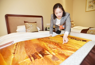 ![]() 莫元花向记者展示《丝路》 董辉 摄 日前,在十三届全国人大一次会议江苏代表团相关会议上,来自扬州宝应的全国人大代表莫元花展示了自己设计的手工乱针刺绣作品《丝路》,而另一位扬州全国人大代表周善红则展示了扶贫成果花椒、茶叶。 8个人共同完成 乱针绣《丝路》祝福“一带一路” “这幅作品以针为笔,以丝为墨,以绸为底,重现陆上丝绸之路,呼应‘一带一路’倡议。”全国人大代表、宝应县国凤刺绣厂技术总监莫元花向记者介绍。 作品中,嘉峪关、须弥山、月牙泉、楼兰古城等地标错落分布于波澜壮阔的沙海中;整个画面流光溢彩,象征着丝绸之路所创造的经济辉煌与文明成果。 “金黄色调的画面用色,寓意着‘一带一路’必将会带动沿线经济带共同发展。”莫元花解释。 这幅大气磅礴的作品采用了拼接而流畅的板块设计,“彰显着不同国家、不同民族对‘一带一路’倡议的认同,以及共同谱写‘新丝绸之路’金色篇章的美好愿望。” 莫元花说,这幅《丝路》充分代表了手工乱针刺绣的技艺。“这幅作品是由5块拼起来的,需要8个人一起做。线条要流畅,色彩要一气呵成,对相互配合的要求很高。” 以作品中的两处骆驼为例。“远处的骆驼,在茫茫沙漠中,需要营造隐隐约约的感觉;前景中的骆驼,需要加强体积感与色彩勾勒。”莫元花表示,单单是一只骆驼,就要绣好几天。 精准扶贫出成果 带花椒茶叶为村民做广告 全国人大代表、江苏万顺机电集团董事长、扬州江都区丁沟镇丁西村党支部副书记周善红则带着花椒、茶叶来到会场。 “这是村民们托我带来的。”周善红讲述了自己帮助陕西富平县漫町村扶贫致富的故事。这个曾经的贫困村,地处西北黄土高坡,没有别的植物,但漫山遍野都长了花椒。 “丰产不丰收”的现实深深触动了周善红。他和富平县签订扶贫合作协议,更为漫町村开出一张“药方”,在村里建了合作社、花椒烘干厂和炼油厂,对花椒等农产品进行深加工。 除了花椒,周善红还带来了福建寿宁县的茶叶,这同样也是扶贫的成果。“这是当地茶园里产出的茶叶。2014年,当地人均收入不到6000元;2017年,人均收入已经到了12000元。” 谈到老百姓脱贫以后如何保住成果,周善红建议,要给当地脱贫的百姓定期培训,引导他们产业转型。“我们要让当地百姓学会造血,引进乡土人才,支持乡村建设。” 扶贫路上不懈怠 继续带领乡亲们一起致富 记者了解到,莫元花积极带动村民一起致富。她为村里有志从事乱针刺绣的妇女提供免费培训,还与县职教集团联合开办了职工职业技能中专班,吸引了一批周边乡镇的妇女。家家做刺绣,户户有绣娘,乱针绣成为了实实在在的富民产业,留守儿童的问题也迎刃而解。“希望更多的人传承中国传统文化,愿更多的农村留守妇女走上致富路。”莫元花说。 周善红是2017年全国脱贫攻坚奖获得者。他全身心投入脱贫攻坚事业,因地制宜,在贫困革命老区探索创新“产业进村、就业致富、创业培训”精准扶贫模式,8300多名贫困人口受益增收,为贫困地区脱贫攻坚起到了积极的示范引领作用。 2014年以来,周善红先后投资3000多万元在福建省寿宁县下党村创建“定制爱心茶园”、在陕西省富平县漫町村成立满塬红花椒农业合作社、在扬州市张倪村兴建1030亩现代有机农业种植基地,帮助5300多名贫困人口增收致富。此外,在江西、陕西、福建、广西、甘肃、河北等地贫困地区建立劳务输出基地,其中3000多名贫困人口在万顺集团就业,年人均纯收入3.5万元;投入1000万元为56个国家级贫困县培训1000名创业致富带头人和500名扶贫创业导师,目前300多人成功创业。 “我们会继续努力,带领乡亲们一起致富。”莫元花和周善红表示。 特派记者 刘冠霖 |