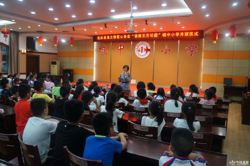 开班仪式在学校大礼堂举行,宝应县“龙之情”爱心协会秘书长、协会关工委主任李映华主持活动。李映华褒赞胃城中小学浓厚的儒雅学宫文化,丰富多彩的文体活动。宣布把扬州市民政局的公益项目书画、陶笛、文学社课外兴趣班放在这所名校,联袂合作。