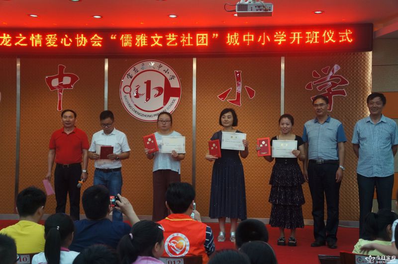 宝应龙之情爱心协会副会长朱国祥当场宣布书画、陶笛、文学社三个兴趣班的班主任和指导老师的名单,并向他们颁发聘用证书。