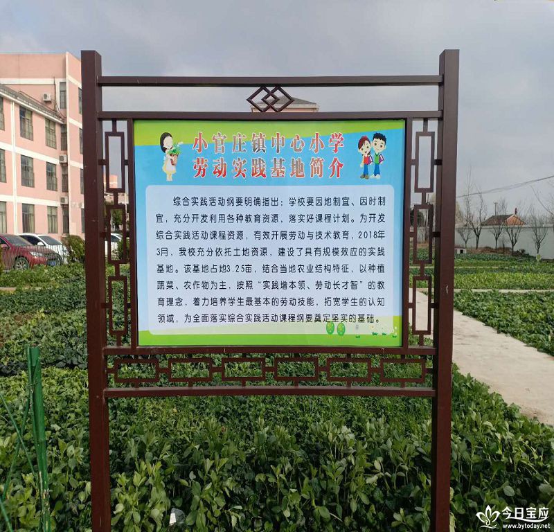 为开发综合实践活动课程资源,有效开展劳动与技术教育,小官庄镇中心小学因地制宜,开辟了劳动实践基地“勤耕园”,成为孩子们的“第二课堂”。 孩子们每周利用一节综合实践课在老师的组织和指导下,在劳动实践基地里学种菜、学种农植物,亲近自然,与大自然接触,与大地接触,逐步了解植物生长的特点,增强劳动技能。懂得只有通过自己双手创造出来的东西更有意义和价值。