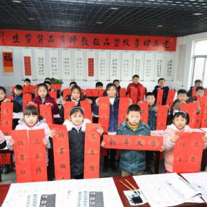 黄浦小学:开展辞旧岁迎新送“福”活动 泾河镇黄浦小学 赵元忠 吴海波 岁月如歌,时光荏苒。为了迎接即将到来的2019年,12月28日,泾河镇黄浦小学开展了辞旧岁写对联迎新送“福”活动。活动由学校“爱莲书法社”特聘教师沈仲景牵头组织,他连夜为全校教师书写了五十幅“福”字,书法社每位成员书写一幅对联,以表达对全校老师的新年祝福。