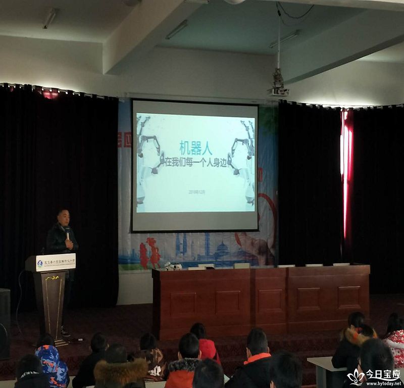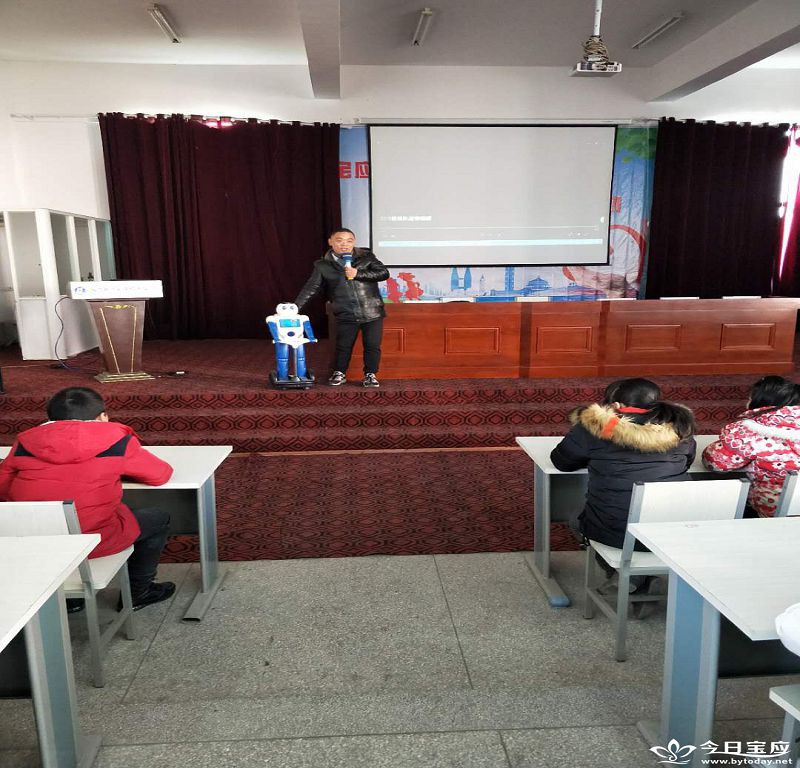 小官庄镇中心小学开展了“智能机器人在身边”科普讲座2018年12月29日上午,在小官庄镇中心小学报告厅里来了一位嘉宾,它穿着白色的金属上衣,蓝色的裤子,有着蓝宝石般闪烁的眼睛,它就是人工智能机器人小嘉宾,陪伴它而来的是宝应县科普讲解团的王超老师。他给官小的孩子们带来了一堂别开生面的机器人展示课堂。他给官小的同学们诠释了什么是机器人,生动活泼地讲解了机器人的分类,生活中的人工智能、机器人的历史等等。认识并了解了人工智能机器人以后,孩子们还和这位机器人小嘉宾一起做了互动游戏,比如你问我答,你来猜猜我的年龄情绪等。最后机器人还给孩子们表演了舞蹈等,引起现场小观众们一声声的惊叹。 本次活动让孩子们真切感受到了机器人以及科学带来的魅力,开阔了知识面,在玩乐中学到知识,为孩子们插上了“科技梦想”的翅膀。(仲泉)