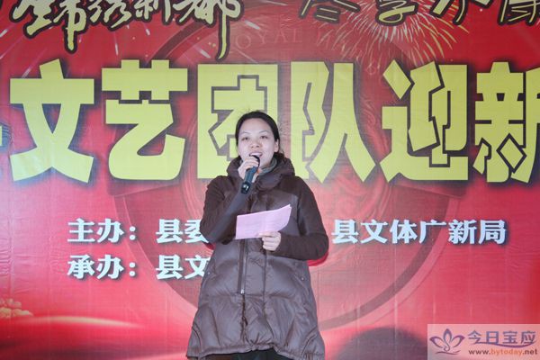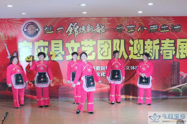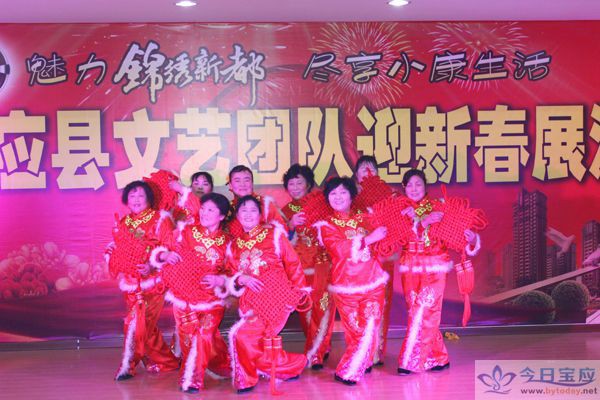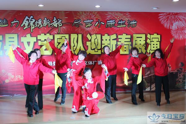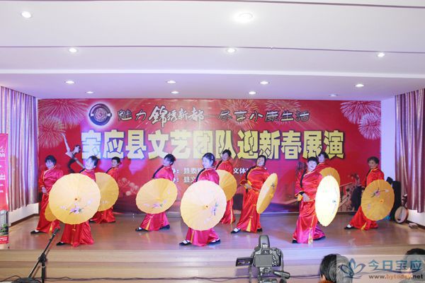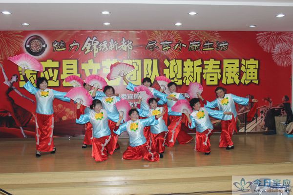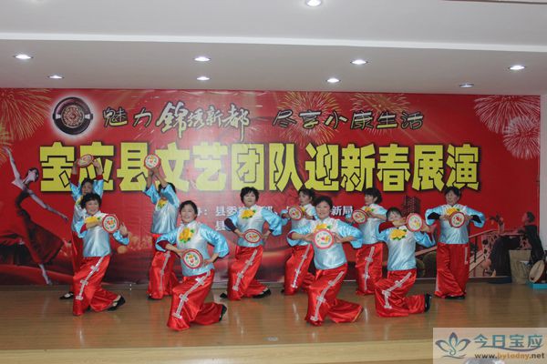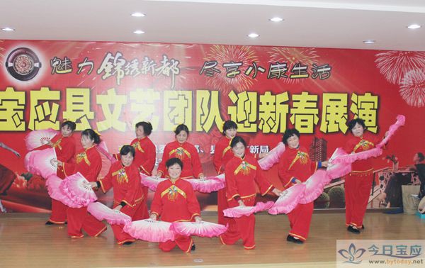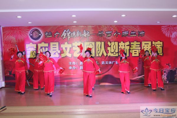 |   1月15日下午,由县委宣传部、县文体广新局联合举办的全县文艺团队迎新春展演首场演出在县文化馆成功举行!  参加本次首场展演的文艺团队为:东门社区阳光艺术团、城中社区凯歌艺术团以及东升社区荷莲艺术团。本次展演在由凯歌艺术团带来的大合唱《今日宝应》声中拉开序幕,至阳光艺术团带来的舞蹈《爷爷奶奶和我们》,宣告本次展演成功闭幕。 据悉,本次展演将连续进行四天。四天之后将进行文艺团队下乡镇巡回展演。(潘安 朱兴荣)