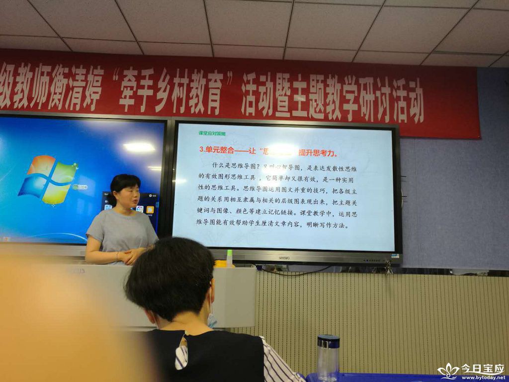 5月28日下午安宜镇中港小学全体语文老师来到宝应县叶挺桥小学五楼多功能教室,参加由市特级教师衡清婷领衔的特级教师牵手乡村教育活动。 活动由特级教师衡清婷主持,她首先对疫情情况下的线下语文现状与应对之策与叶挺桥和中港小学语文教师进行了分享。 接着结合青年语文教师的展示课进行点评,肯定教师充分结合线上教学成果与学生实际相结合,在赶进度的同时注意班级实际,重视班级课堂内补缺补差,效果是显著的。同时鼓励小组内对“零”起点同学辅导与布置。 最后,衡清婷校长还回答了中港小学语文教师提出的问题,为他们排忧解难,帮助一线基层学校教师走出“迷宫”,更适应现代教学新时代。 据悉,特级教师衡清婷牵手乡村教育活动开展已经3年,多次到中港小学送教、送经,受中港小学师生喜爱。 |