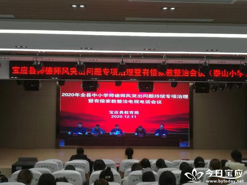 泰小组织教师收看县师德师风突出问题专项治理曁有偿家教整治电视电话会议 为了适应新形势下加强师德建设、行风建设的新要求,开展禁止教师有偿补课专项治理。以严的标准、实的措施、硬的作风坚决遏制不正之风,维护优良教育行风,努力办好人民满意的教育,12月11日, 宝应县泰山小学在学校报告厅组织全体教师收看全县师德师风突出问题专项治理曁有偿家教整治电视电话会议,营造风清气正的育人环境。泰山小学全体教师、世纪园幼儿园全体教师参加了活动。 |