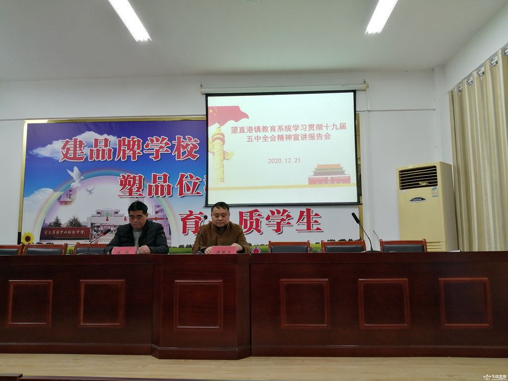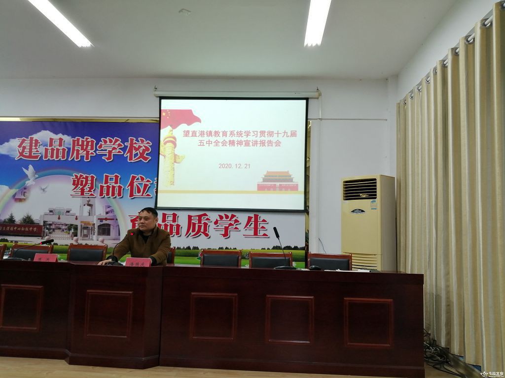 满满的“干货”和正能量——望中举行学习贯彻十九届五中全会精神宣讲报告会室外寒气袭人,会场暖意融融。12月21日下午5:15分,望直港镇中心初中举行学习贯彻十九届五中全会精神宣讲报告会,教育党总支书记陈洪主持会议,近百名教师参与聆听。潘国庆校长首先表达对大家冬至日的祝福,说明会议的背景。通过两组数字,总结了“十三五”期间国家所取得的成就;明确“十四五”规划和2035年远景目标,社会文明达到新高度,民生福祉达到新水平;要建设文化强国、教育强国、人才强国、体育强国、健康中国;2035年要实现教育现代化,建设高质量的教育体系,促进教育公平和评价机制的改革,倡导全民终生教育。 潘国庆要求党员干部以身作则,做好表率,勉励大家,要增强幸福感、责任感、危机感;要严守师德师风,遵守纪律,服从分工,师生之间和谐相处;要有善心、说善言、做善行,要从善如流,上善若水;要用心而为、用力而为、协调而为,君子有所为,有所不为,顺势而为。 简明扼要的报告会,满满的“干货”和正能量,使广大教师初步领会了十九届五中全会的核心要义和实质内涵,为大家指明了负重前行的方向,必将内化为努力工作的动力。