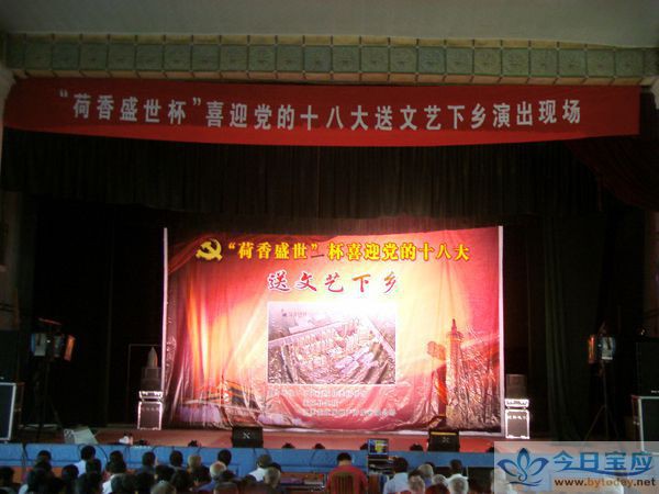 9月17日下午,由中共宝应县委宣传部、宝应县文联、江苏安宜房地产开发有限公司主办的“荷香盛世杯”喜迎党的十八大送文艺下乡现场演出走进曹甸镇。