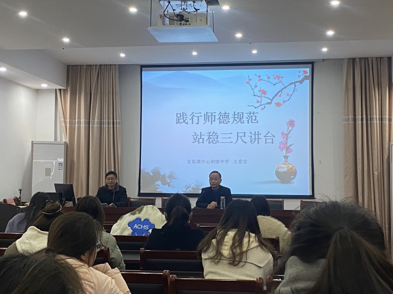 为全面提升青年教师的教育理念,加速他们快速成长,打造出一支综合素质优良、思想稳定、富有活力和创新精神的可持续发展的青年教师队伍。12月10日下午,宝应县夏集镇中心初中在二楼会议室举办了“夏集镇青年教师成长学校大讲堂”专场讲座。来自全镇各校园近30名青年教师参加了此次活动。 活动中,镇教育办公室主任杨建华解读了《宝应县青年教师一三五工程考核细则》。他要求青年教师认真钻研业务,努力提升自身的教育理念、学科素养、工作技能、科研能力、实践与创新能力等,以最完美的状态通过一三五考核,成长为骨干教师。 中心小学校长王爱宏作了题为《践行师德规范,站稳三尺讲台》的师德讲座。他从如今我们最怕缺什么、教师为什么要践行师德规范、教师如何践行师德规范等方面展开阐述。他希望青年教师们做一个有理想信念、有道德情操、有扎实知识、有仁爱之心的四有教师。 会后,青年教师们斗志满满,纷纷表示将努力学习,认真工作,做一个新时代的好教师。 |